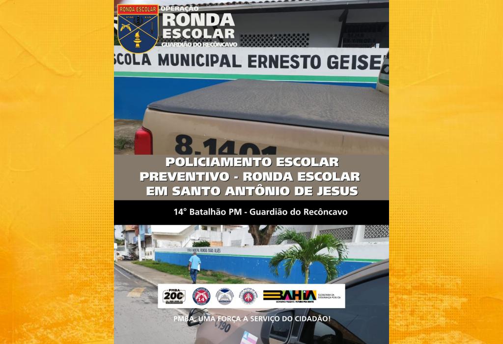 Na manhã desta segunda-feira (5), o 14° Batalhão da Polícia Militar intensificou a atuação da Ronda Escolar em instituições de ensino de Santo Antônio de Jesus, no Recôncavo baiano.