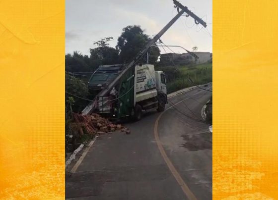 SAJ: Caminhão de lixo perde freio e colide com poste no bairro Santa Madalena