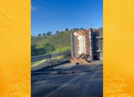 Vídeo: Parte da carroceria de carreta tomba na BR-101, próximo a Dom Macedo Costa
