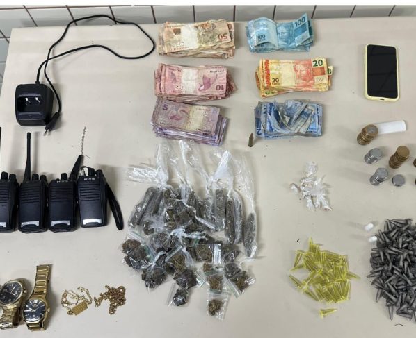 Além das drogas, também foram encontrados rádios comunicadores, dinheiro em espécie, joias, munição de calibre 5.56 e um celular.