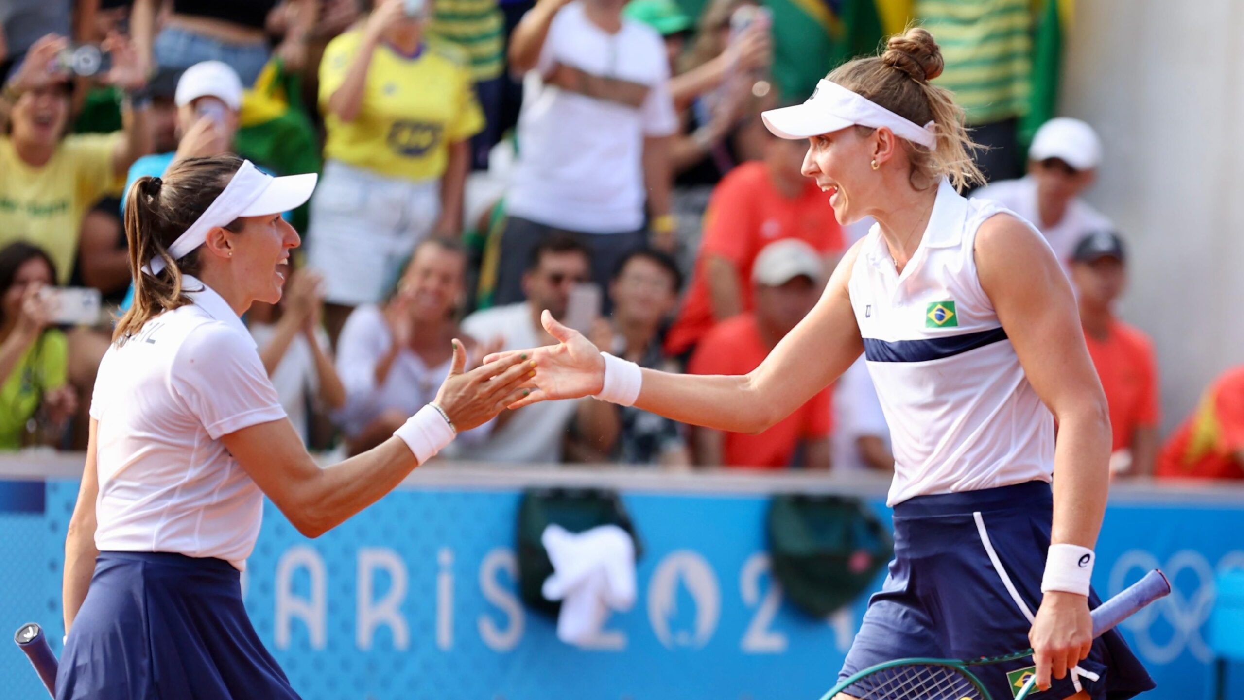 Depois de terem a estreia por duplas adiada devido a chuva, Bia Haddad Maia e Luisa Stefani começaram com vitória nos Jogos Olímpicos de 2024. As brasileiras venceram as chinesas Yuan Yue e Zhang Shuai por 2 a 0 com um duplo 6/4 nesta segunda-feira (29).