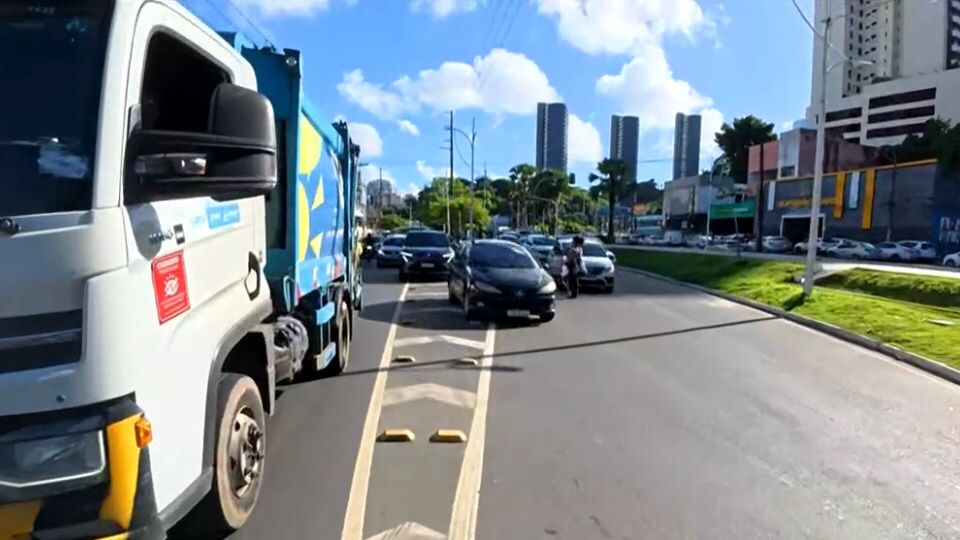Um caminhão de lixo bloqueou parcialmente a Avenida Vasco da Gama, nas proximidades do HGE, sentido Rio Vermelho, Salvador. O veículo apresentou uma falha mecânica na manhã desta quinta-feira (9).