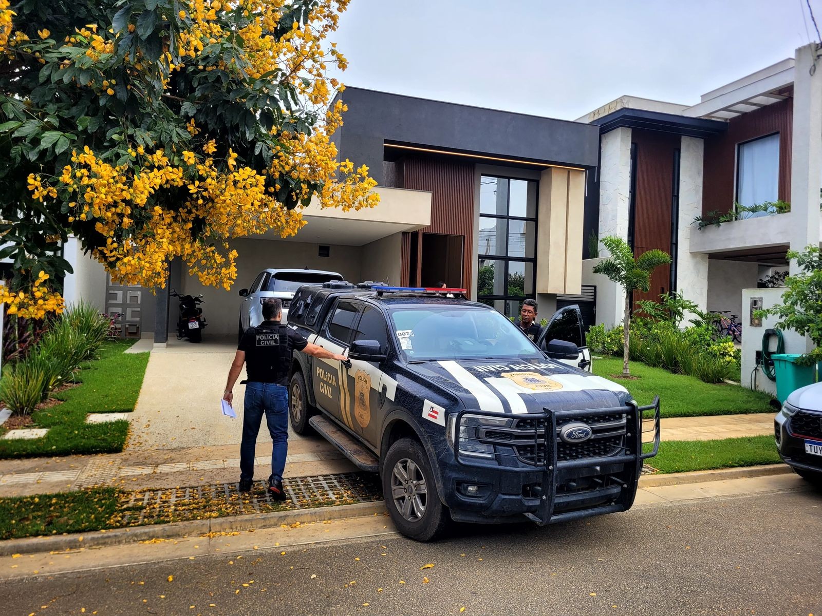 Ele foi conduzido a uma unidade policial, onde foi cumprido um mandado decorrente de condenação ainda não transitada em julgado, e segue custodiado à disposição do Poder Judiciário.