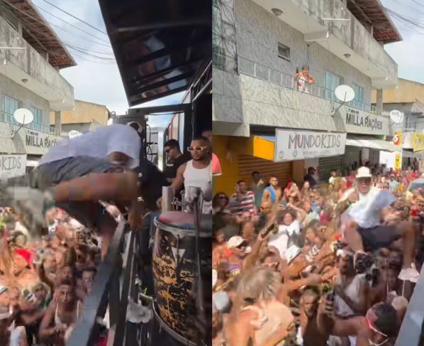 O Kannalha pula do trio e se joga no meio do povo durante arrastão da Sexta-feira Santa