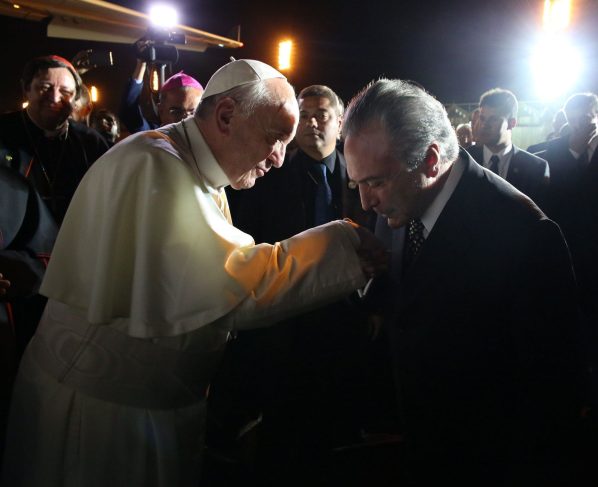 Temer se encontrou com Francisco em 2014, ainda quando era vice-presidente. Junto do senador Renan Calheiros (MDB), que presidia a Casa Legislativa, representou o Brasil na missa de canonização do Padre José de Anchieta, dirigida pelo papa no Vaticano.