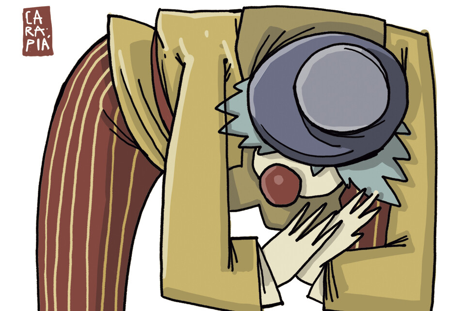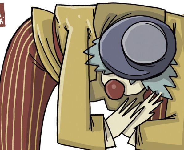 O espetáculo começou assim. Um palhaço no palco, fatiando e engolindo pedaços de banana. A criança que há em mim pulou da cadeira. A outra, suavemente sorriu. Senti o ritmo da respiração da mãe ficando errático. Entra o segundo palhaço. Longas pernas de pau. Se alguém sabe roubar a cena é aquele que se equilibra em varas de madeira. Toc, toc, toc. Sem pedir licença , o bebê abre a cortina do riso.