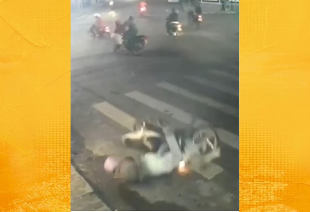 O vídeo mostra ainda, que o impacto foi forte o suficiente para arremessar um dos motociclistas ao chão, mas, felizmente, até o momento, não há informações sobre ferimentos graves.