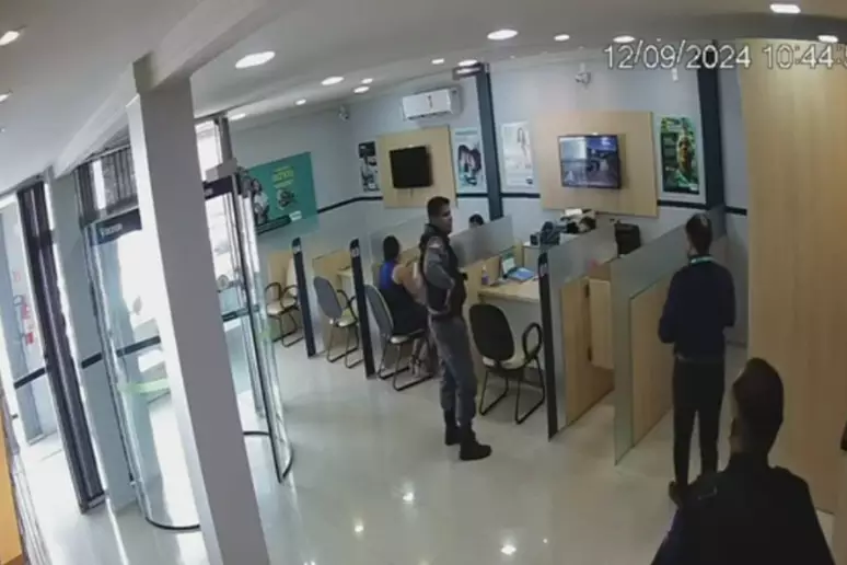 Nas imagens, o suspeito aparece acompanhado de um comparsa, e, de acordo com a Secretaria de Segurança Pública (SSP) do Maranhão, ambos chegaram de motocicleta. O homem circulou pelo estabelecimento e, em seguida, abordou um vigia, anunciando o assalto enquanto olhava para as câmeras. Funcionários da agência se assustaram, e uma mulher chegou a esconder o celular embaixo da mesa.